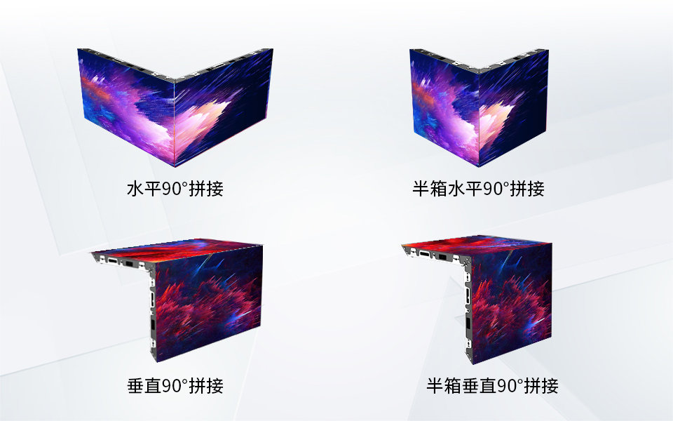 水平和垂直方向均支持90度精准拼接,可根据项目需求切半箱构建广阔视觉空间。